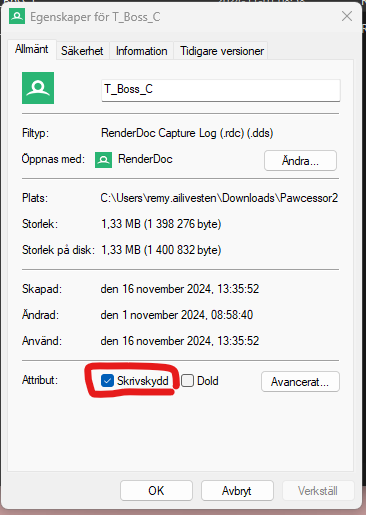 Then uncheck “Skrivarskydd”, the converter WILL NOT WORK if this is not unchecked! Remember to click on “Värkställ” before closing out of this window!