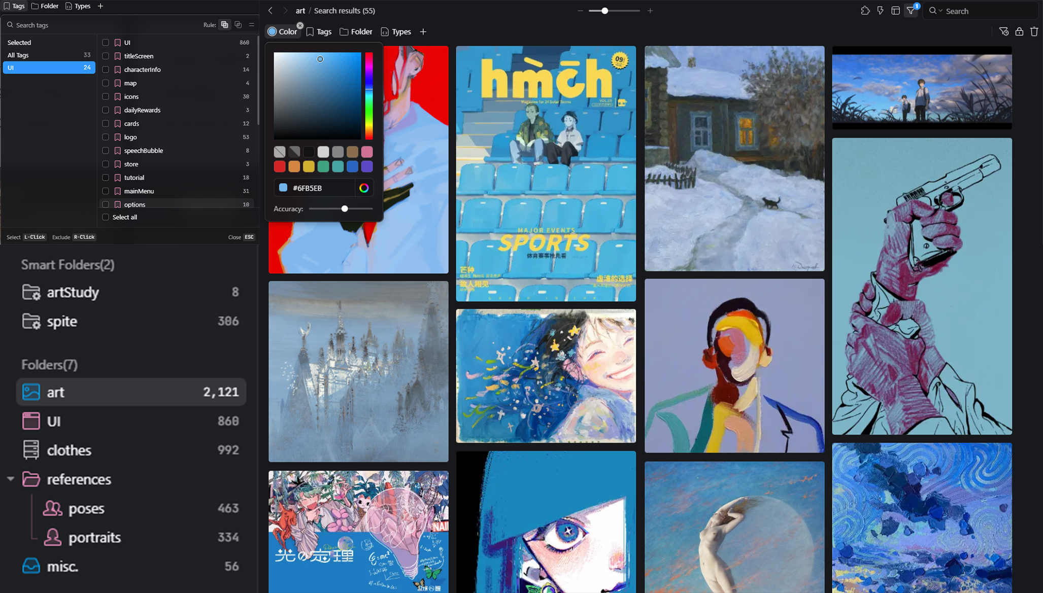 - I love this fucking app it’s so good ughhH!! Please check it out if you need to keep a bunch of reference images handy and organized into folders and/or tags. Listen I’m all for self hosted and open source software but you can pry Eagle from my cold dead hands. YOU CAN SEARCH ALL YOUR IMAGES BY COLOR???? THAT’S SO COOL! Oh, also here’s some screenshots of my eagle.